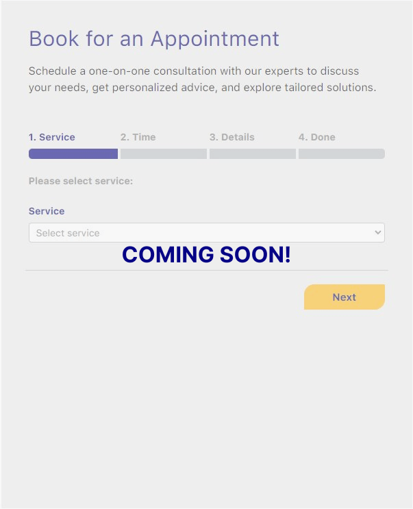 Schedule a one-on-one consultation with our experts to discuss your needs, get personalized advice, and explore tailored solutions.
